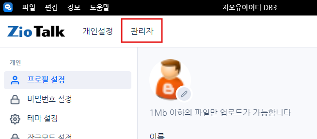 지오톡(ziotalk) 관리자페이지 설정 매뉴얼